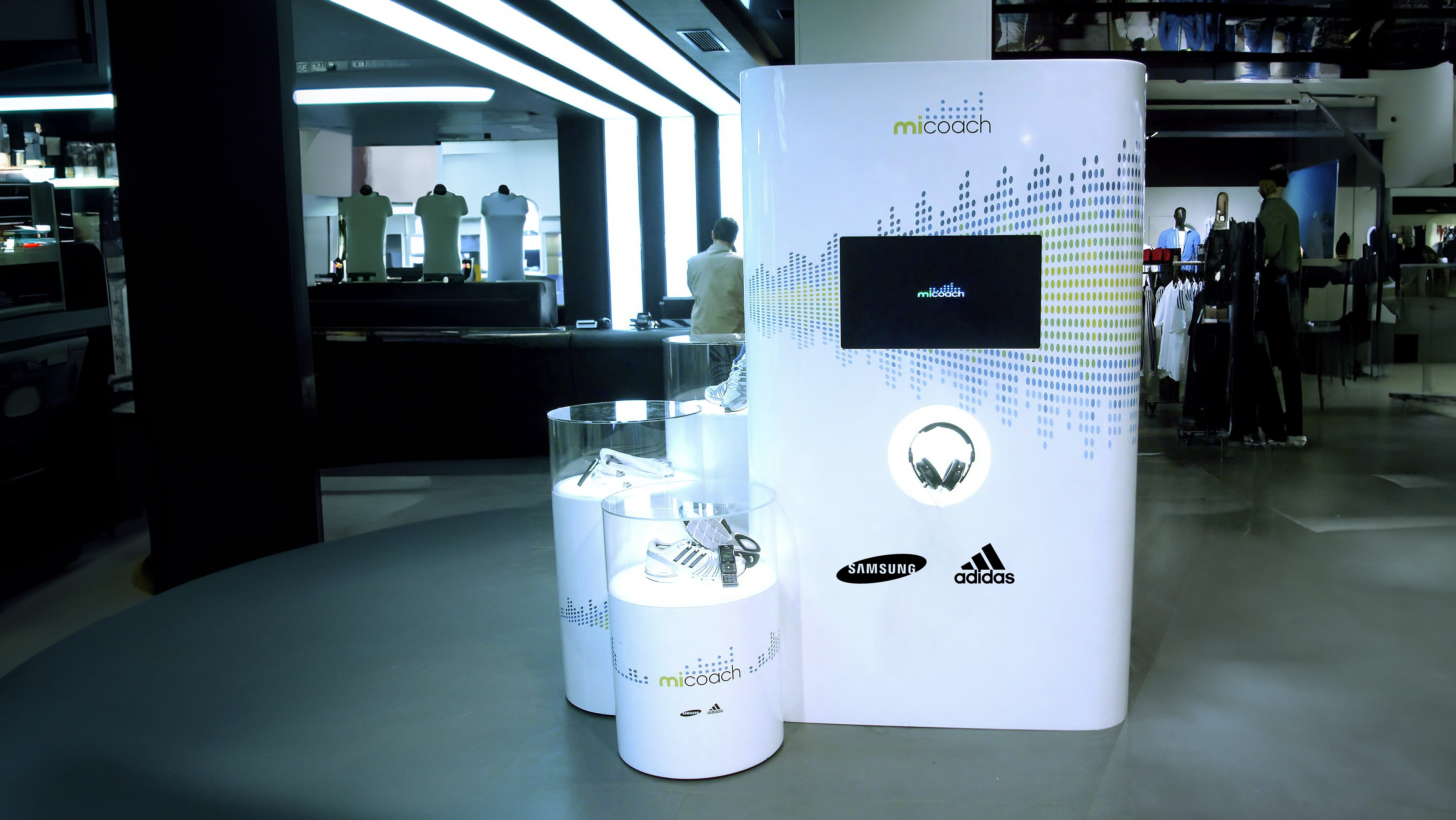 The Adidas flagship store, in partnership with Samsung, required a POS display to showcase the MiCoach range, which tracks workouts and provides detailed statistics. Customers can join challenges and share their progress with a global community for added motivation. I designed a sleek display that featured headphones and a screen, allowing customers to interact with the full range of products and better understand their capabilities. The design kept the focus on the product while integrating seamlessly with Adidas’ brand identity.