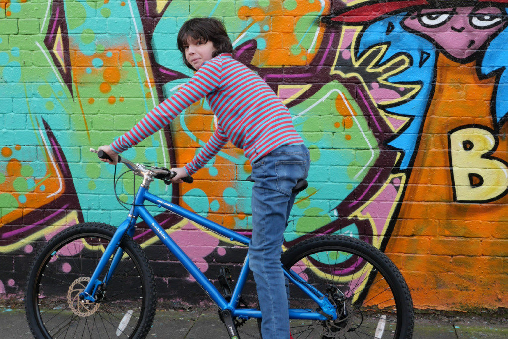 The long reach and slack head angle of the Arcade range of bikes are thoughtfully engineered to promote optimal weight distribution, enhancing stability and control for young riders. This design lowers the center of gravity, inspiring confidence as they navigate various terrains. With its lightweight alloy frame, the bike is easy to ride and maneuver, making it suitable for young explorers. The retro gaming graphics and metallic blue paint add a distinctive flair, making it a fun companion for urban adventures. Whether cruising through the city or exploring off-road paths, this geometry ensures a balanced ride that encourages exploration and skill development.
