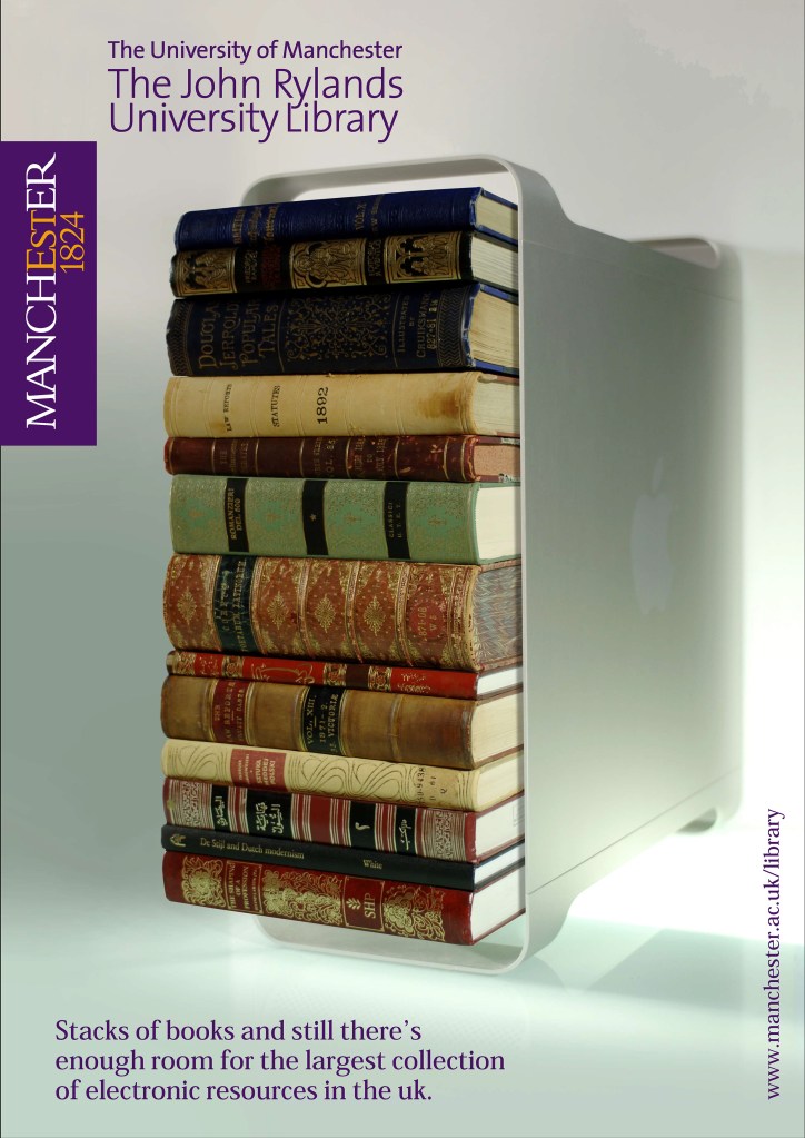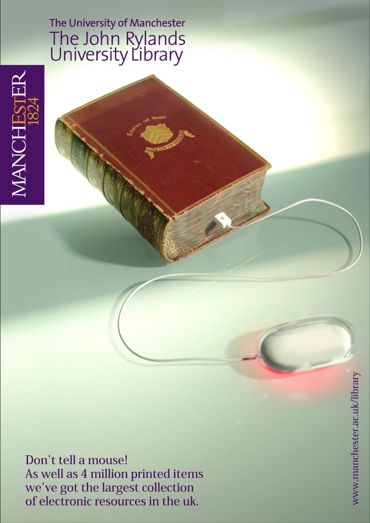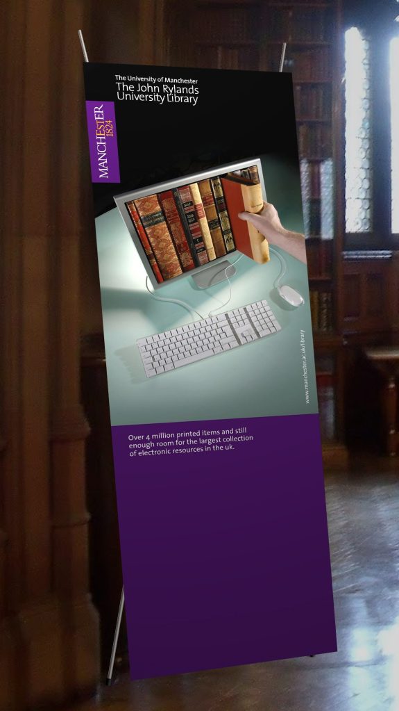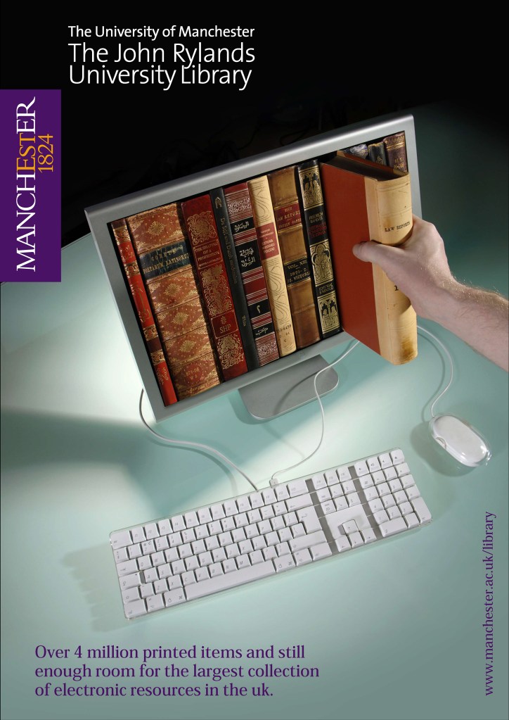 The challenge was to showcase the expansive electronic resources available at John Rylands University Library. While known for its impressive physical collection, many of the books have been digitised for easy online access. To bring this idea to life, we used striking visual metaphors that illustrate the seamless flow of knowledge from a computer. By contrasting the timeless elegance of books with the sleek, modern aesthetics of technology, we created a dynamic narrative that celebrates both tradition and innovation. The campaign ran on six-sheet posters and on physical posters around the university and the library.
