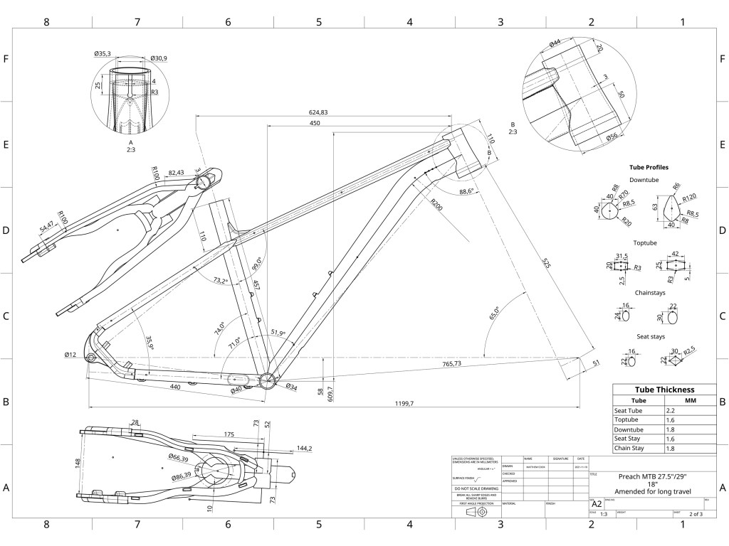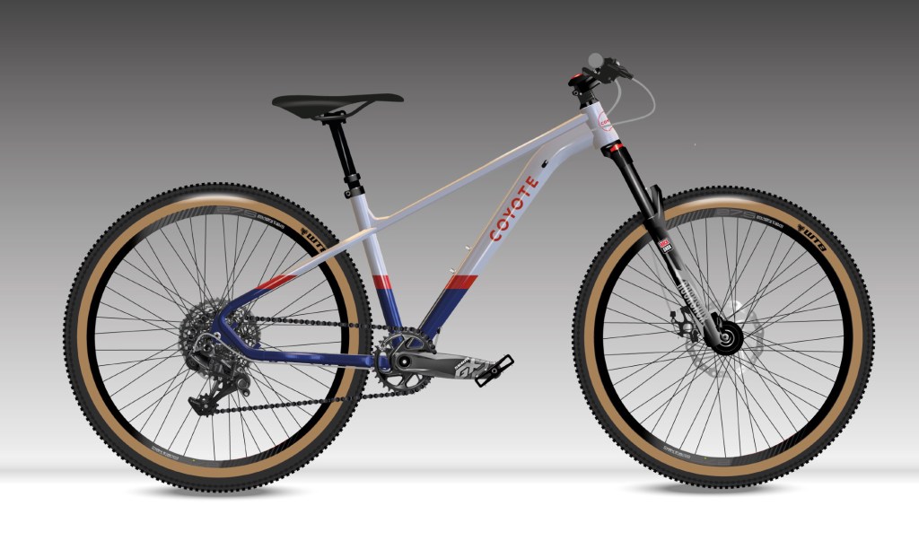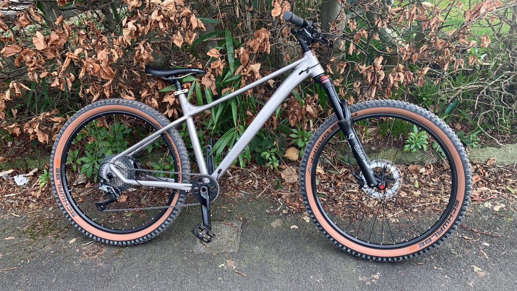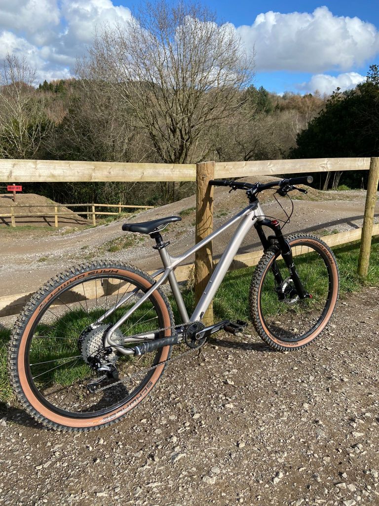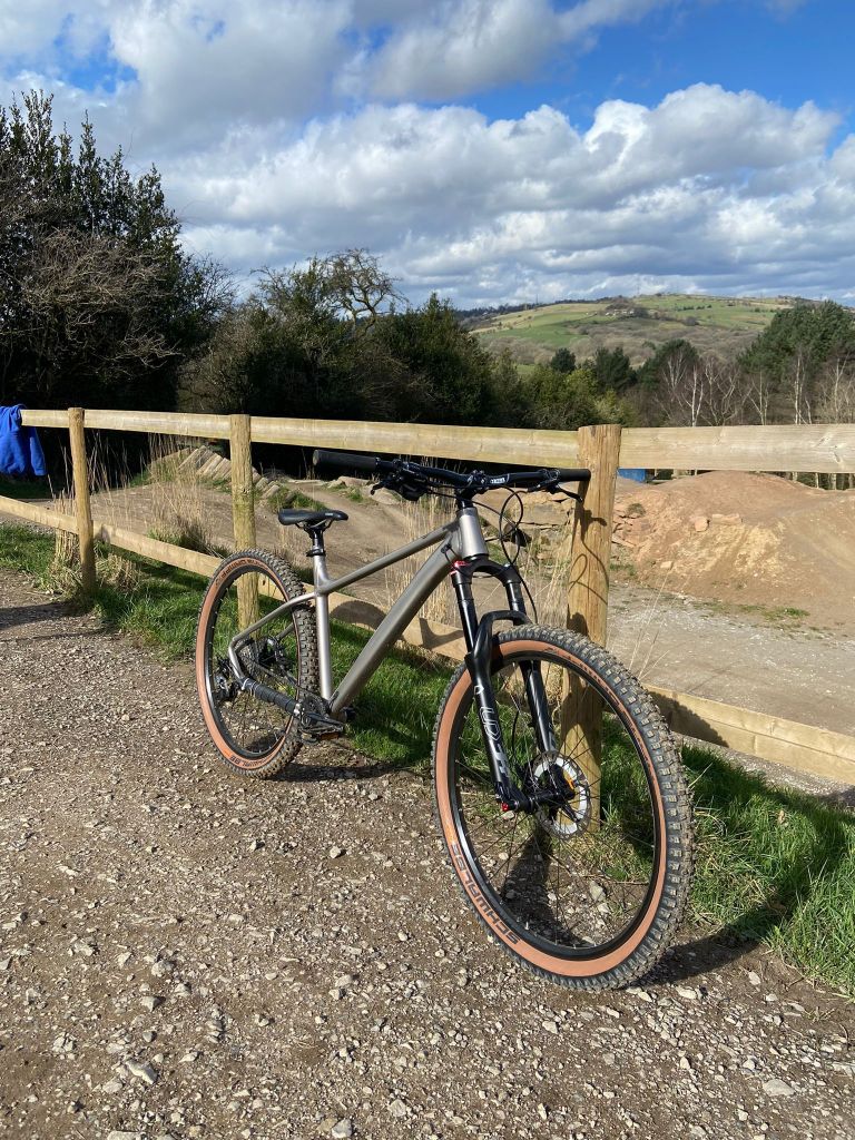 The brief was to design an aggressive XC bike which was way more capable than its price tag would suggest! We went for a 140mm air fork and a long and slack geometry with an exceptional standover height. The frame was designed to have clean, flowing lines with a custom profiled toptube giving a streamlined silhouette. The result was a bike that was extremely confident descending at speed and sure-footed on the trails due to a 65 degree head angle paired with Schwalbe Hans Dampf 27.5 x 2.35, giving both poise and maneuverability with superb grip. The groupset of choice was Shimano’s ‘rock-solid’ XT. Matt our test rider & engineer got some huge air on this thing, hence the slammed seat!
